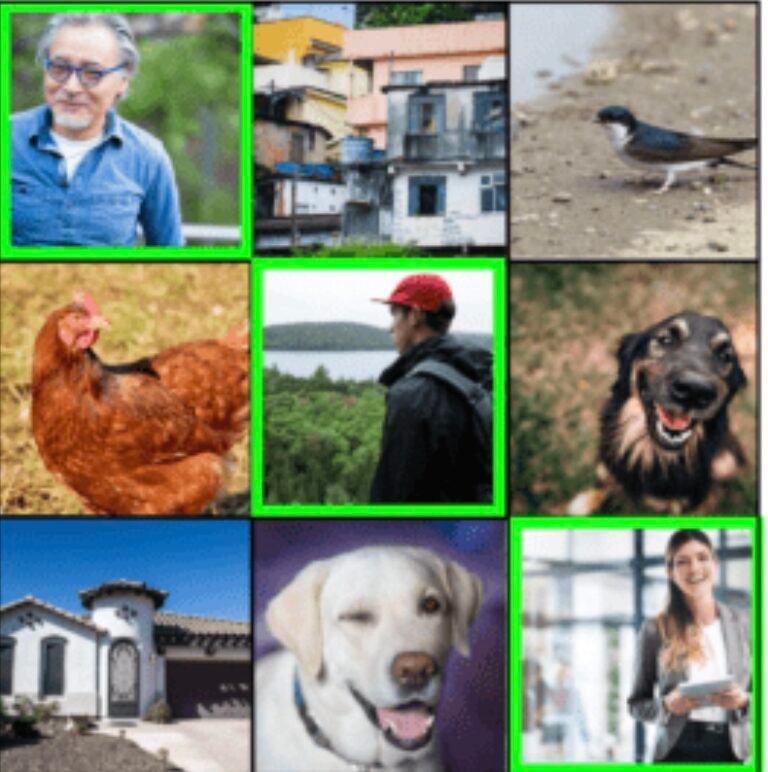 No Captcha abaixo o usuário deveria ter assinalado em verde todas imagens que continham pessoas.